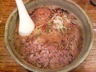 味噌ラーメンのように黄土色に濁ったスープで、ほのかに豚骨臭がします